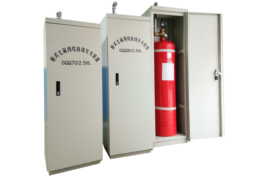 柜式七氟丙烷自動滅火裝置是一種將滅火劑儲存容器、啟動裝置、閥門、滅火劑輸送管路、噴嘴等集中于一箱體內,與火災探測報警設備組成自動滅火的裝置。其滅火效能高,滅火速度快,滅火劑毒性低,不導電,對設備無二次污染。其外型較小輕便,不須單獨設置鋼瓶間,不需另外安裝管網,可以方便地移動到適當位置。特別適合容積較小的防護區,不適合安裝管網的場合,適用于電子計算機房、電訊中心控制室、通訊機房潔凈廠房、圖書館、檔案室、貴重物品庫等較小空間保護區。規格型號:GQQ70/2.5HL GQQ90/2.5HL GQQ120/2.5HL